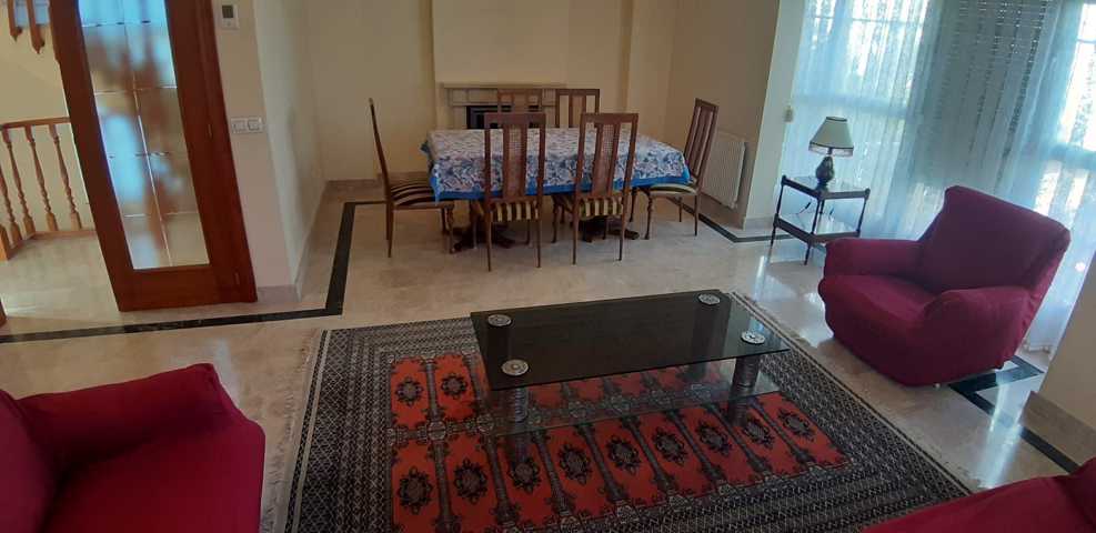 - sótano compuesto de amplio garaje para dos coches grandes, de fácil acceso y amplia rampa con muy poca inclinación, cuarto de calderas con lavabo incluido y ventana enrejada al exterior en el cual la calefacción es de gas natural pudiéndose instalar gasoil, y bodega estilo andaluz, con puerta de salida directa a la parcela y escaleras hasta la planta baja, la cual también dispone de tomas de agua y desagües, con ventana enrejada al exterior y persianas de seguridad