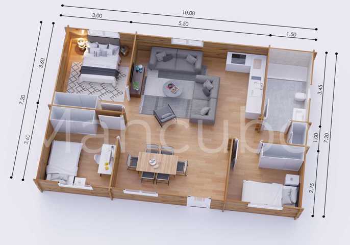 Dimensiones exteriores (anchura x profundidad): 700 cm x 1020 cm