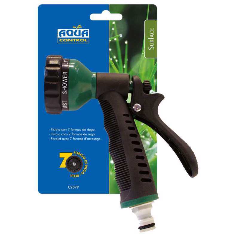 Conexión: Estándar. Material: ABS de gran calidad. Tipo de riego: 7 formas. Gatillo bloqueable Adaptador para enlace rápido.