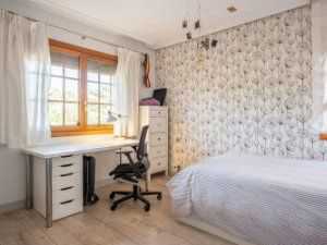 En la planta superior, descubrimos cuatro cómodas habitaciones y dos baños, uno de ellos en suite en la habitación principal. Esta última dispone además de una impresionante terraza que comparte con otra de las habitaciones, lo que nos permite disfrutar del aire libre desde la comodidad de nuestro propio hogar.