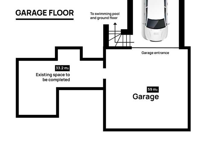 Garage for 2 cars and a space of about 35m2 to enable as a games room, cellar, workshop etc ...
