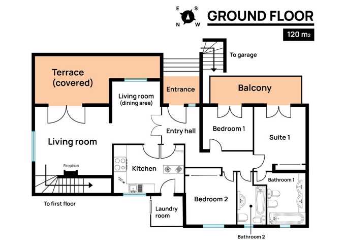 Le rez-de-chaussée dispose d´une grande entrée et d´un accès à la salle à manger et à la cuisine d´un côté et d´un couloir menant à la zone nuit, qui comprend deux chambres doubles, une salle de bain complète et une suite avec sa propre salle de bain.