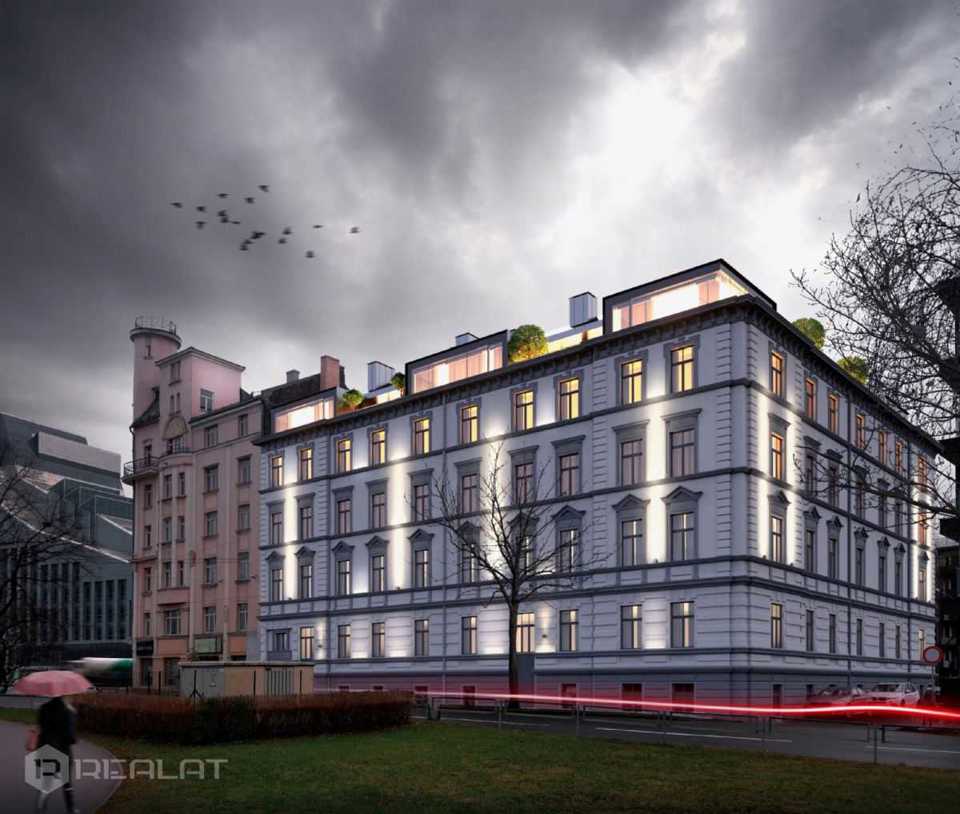 Hовый 2-х комнатный пентхаус с террасой в проекте Hoffmann Rezidence. Здание находится на берегу Даугавы, рядом с Klīversala. Дом полностью реновиро ...ванный и оборудован современным лифтом.