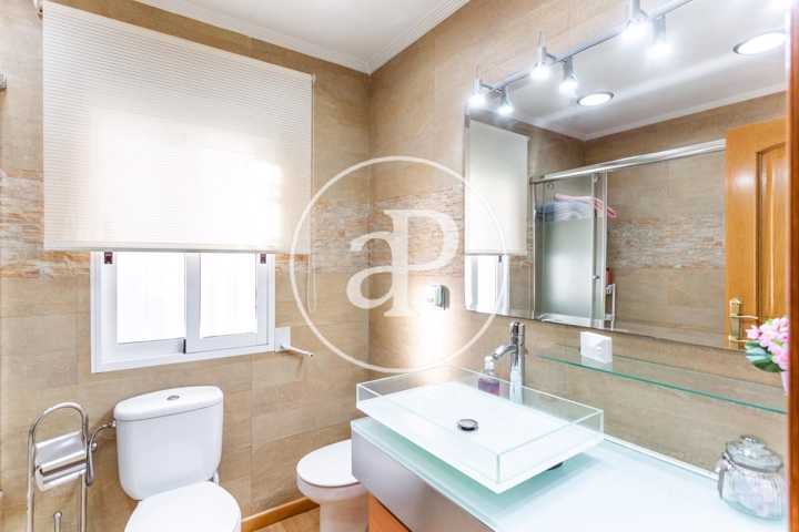 en la planta principal a la que hay varios accesos desde el jardín por las escaleras con entradas a la cocina, o al comedor o directamente al recibidor de la casa. desde la planta baja también hay escalera de acceso interior. La primer planta está cómodamente distribuida en el recibidor, gran salón con chimenea y con vistas al mar, salón-comedor con mucha luz y vistas a la piscina y al jardin, la cocina con gran galería acristaladla y vistas al parque. La zona noche goza de cuatro dormitorios dobles con armarios empotrados, aire acondicionado individual en cada dormitorio y calefacción en toda la casa. Dos cuartos de baño completos en la primera planta.