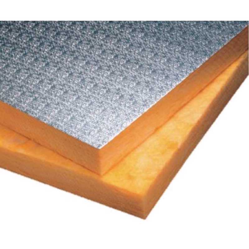 Panel rígido de lana mineral URSA TERRA conforme a la norma UNE EN 13162, no hidrófila, recubierto en la cara vista con un complejo kraft-aluminio gof ...rado Aplicación recomendada: Falsos techos decorativos industriales.