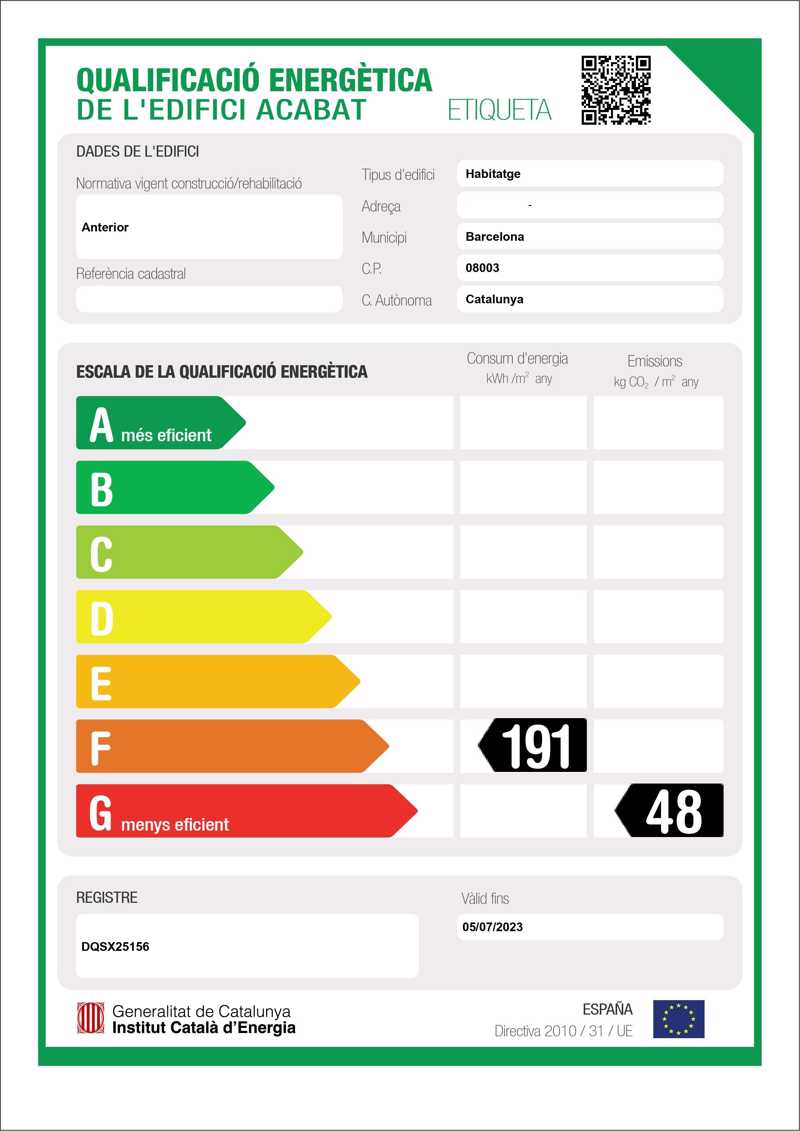 191 KW h/m² Emisija: G 48 Kg CO₂/m²