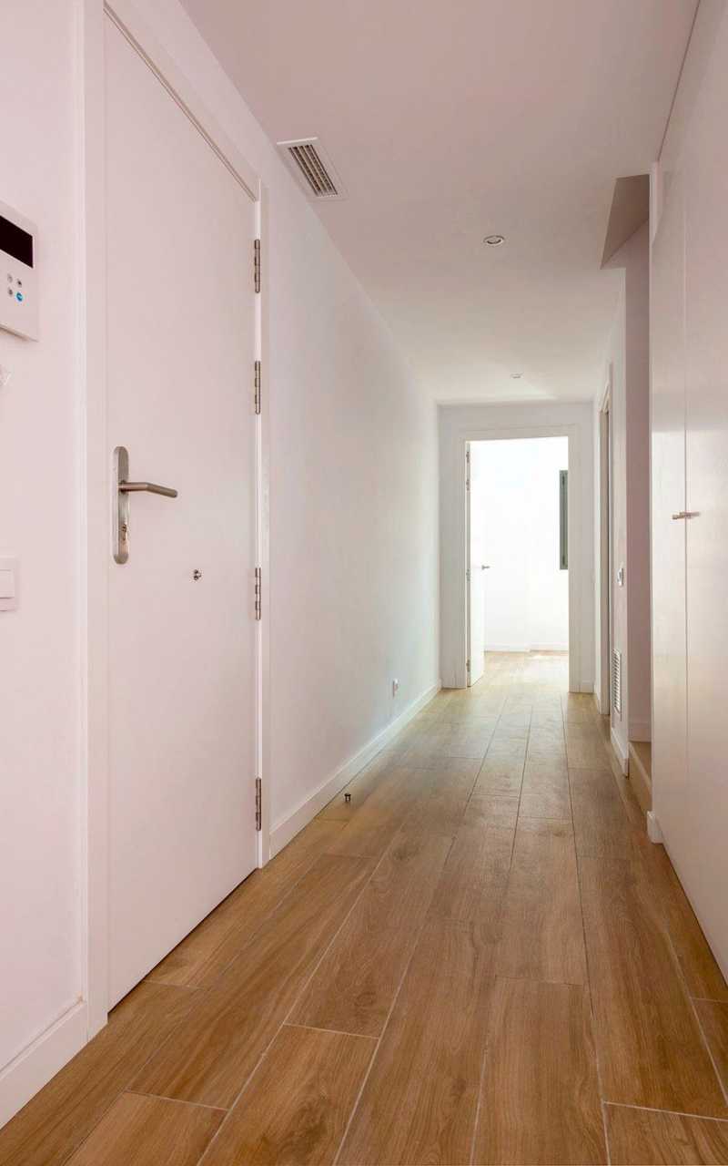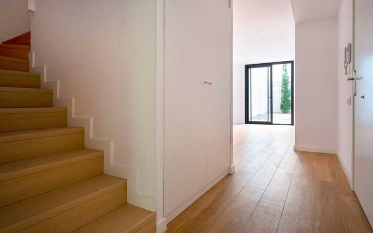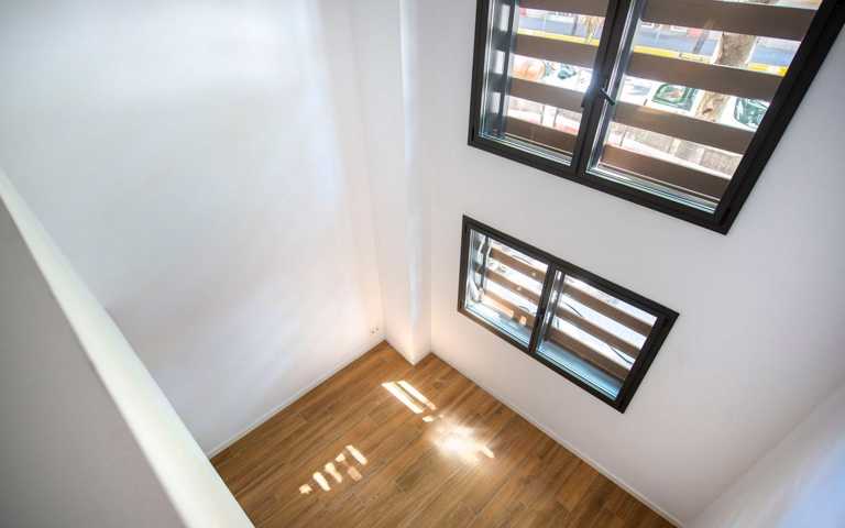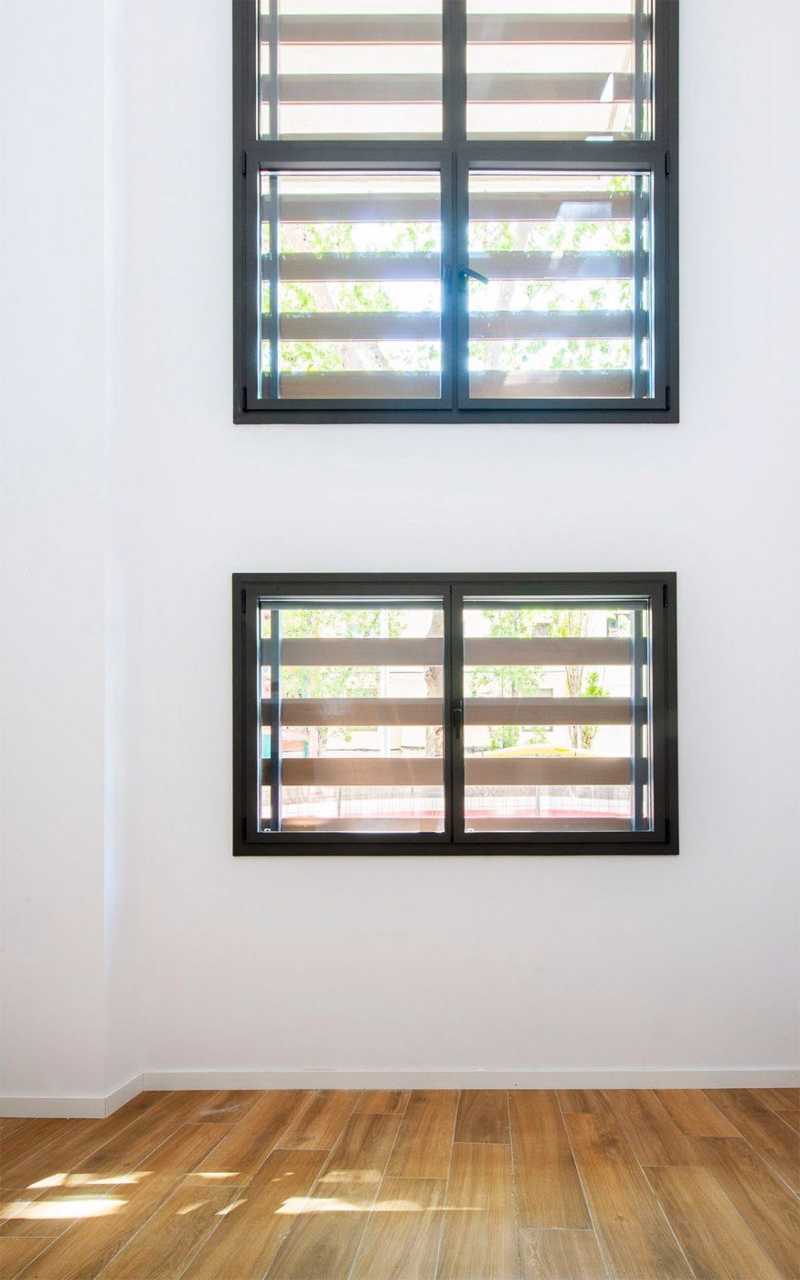 Las carpinterías exteriores son de aluminio, color oscuro, rotura de puente térmico, doble vidrio con cámara y persianas motorizadas. Las puertas interiores, practicables o correderas, son de madera lacada en color blanco. Pavimento de gres porcelánico en todo el piso. Sistema de climatización por aerotermia para ACS, calefacción y refrigeración mediante conducto.
