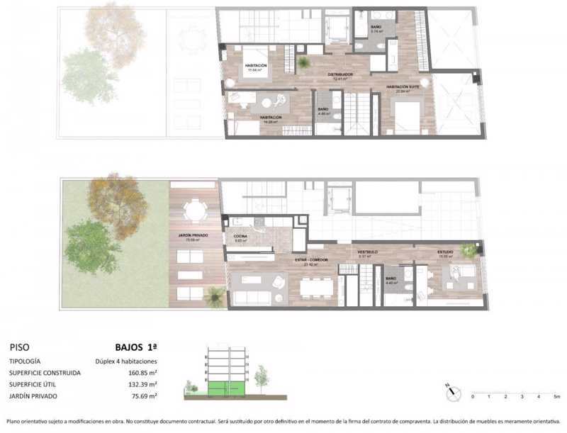 Bajo dúplex de 161 m2 construidos en edificio de obra nueva con ascensor.