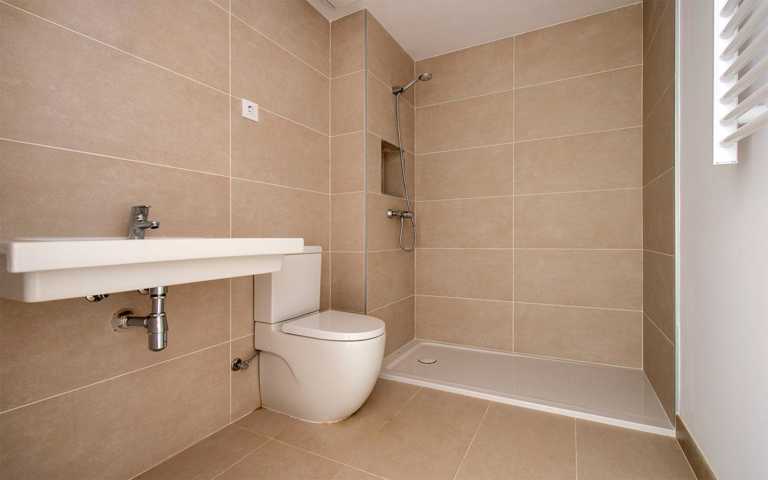 Se accede por planta baja, tiene un espacio de vestíbulo con armario y un baño completo con ducha.
