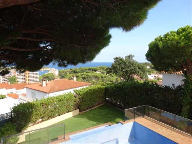 V3513 EXCLUSIVA APIALIA La propiedad consta de 287m2 construidos distribuidos en dos plantas en una parcela de 600m2, está ubicada en una de las mejores zonas residenciales entre Sant Feliu de Guíxols y S’Agaró, tiene unas vistas al mar espectaculares sobre la bahía de S’Agaró y playa de Sant Pol. Cuenta con jardín con césped y piscina desbordante. La construcción es moderna con acabados de alta calidad y consta de la siguiente distribución: - Planta baja dispone de hall entrada, gran salón comedor con grandes ventanales con vistas al mar y acceso a terraza y jardín, cocina independiente, un dormitorio doble con armario y baño con ducha. - Planta Superior dispone de un suite con cuarto de baño privado, dos dormitorios dobles y un baño completo. Todas las habitaciones disponen de armarios empotrados. Los techos de la planta superior son inclinados. Esta planta cuenta con una gran terraza-solarium de 40 m2 Precio venta: 1.350.000€