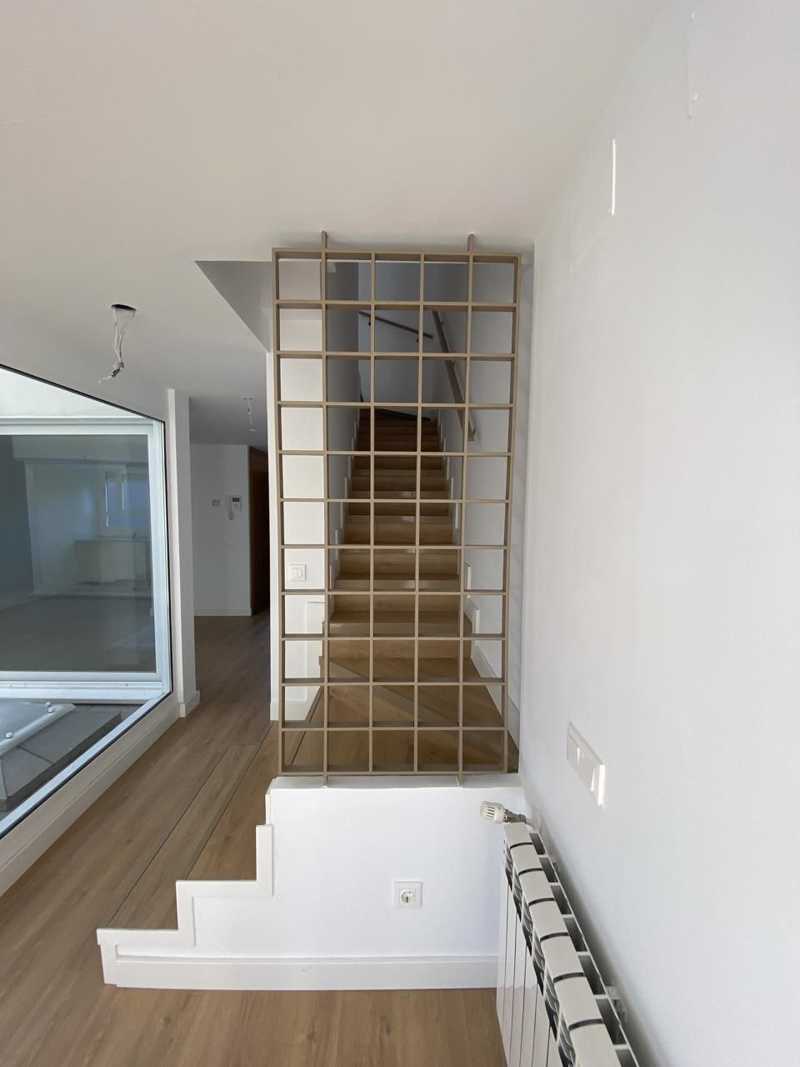 Puerta blindada, armarios empotrados, calefacción gas natural, carpintería interior lacada en blanco y ventanas con rotura de puente térmico. Escalera y suelos de tarima flotante y pintura en liso.