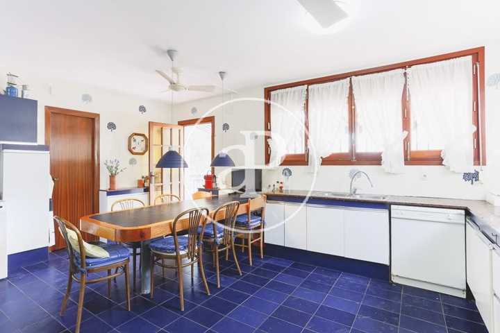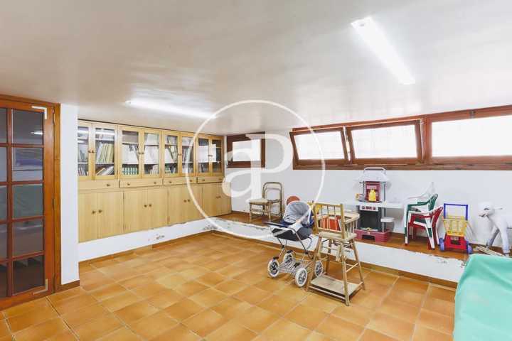La casa cuenta con un comedor salón de unos 50 mt2 a dos alturas, quedando la más baja muy acogedora para compartir con la familia alrededor de la fantástica chimenea con la que cuenta en los días de invierno, también cuenta con 6 habitaciones dos de ellas tipo suite y 4 dobles, la cocina muy amplia de unos 40 mt2 y terrazas muy amplia una a la entrada de la casa y otra en la parte de atrás que se sale desde la cocina, todo esto se encuentra en la planta baja a pie de entrada excepto una de las habitaciones que se encuentra en la planta baja o sótano, con un amplio garaje en la que caben de 3 a 4 coches, una zona de juegos y gimnasio, además de sala de máquinas y un amplio trastero o almacén, y por último en el primer piso tenemos otro estudio o séptima habitación con terraza y solárium con vista al bosque de pinos.