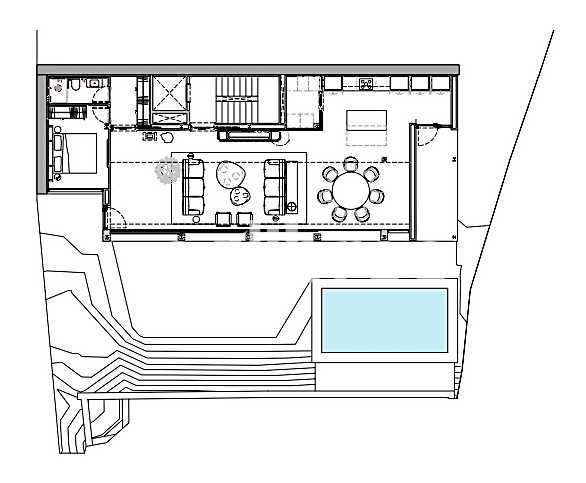 2.- Planta Baja: Gran salón-comedor con cocina con vistas con salida al porche y jardín con piscina. En la misma planta también encontramos un baño, un trastero y la sala de máquinas.